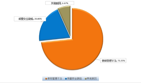 按发生环节划分:发生在使用环节13起,占86.67%;安装修理环节2起,占13.33%。