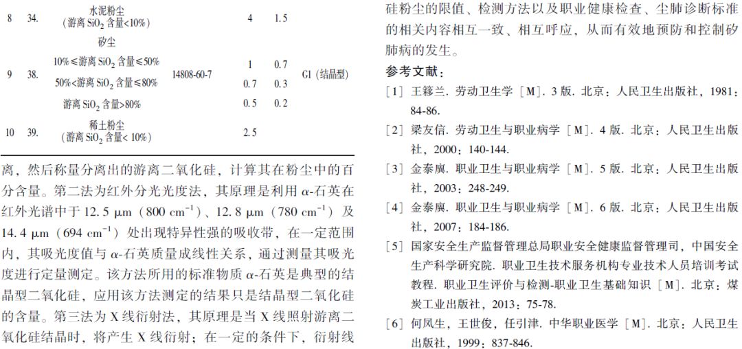 摘要: 通过矽肺病因的分析, 对矽肺、游离二氧化硅、结晶型二氧化硅的概念以及我国含有二氧化硅粉尘职业接触限值的要求和现行的游离二氧化硅检测方法存在结果不一致问题进行了讨论, 并提出了明确游离二氧化硅、结晶型二氧化硅概念, 对含有二氧化硅粉尘的限值备注内容及其粉尘中二氧化硅含量检测方法进行补充、修订的建议。