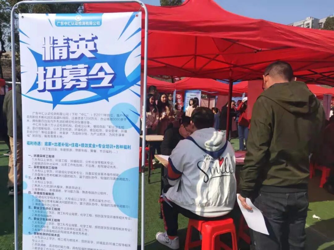 11月22日,广东中汇认证检测有限公司参加了湖南省资源环境与安全大类2020届高校毕业生供需见面会暨长沙环境保护职业技术学院2020届毕业生供需见面会,现场学生踊跃投递简历,我司在见面会上招揽了不少人才。